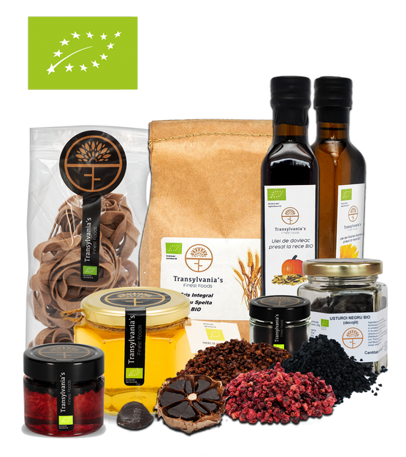 Descoperă produsele bio certificate din Transilvania: uleiuri presate la rece, făină integrală, usturoi negru, miere cu fructe și multe altele. 100% naturale, fără aditivi.